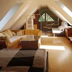Dachwohnung Mit Wasserblick Und Eigenem Bootssteg van 130 m^2 is voorzien van parkeerplaatsen en wifi en ligt in de wijk Köpenick. Het 2-slaapkamer appartement biedt uitzicht op de tuin.
